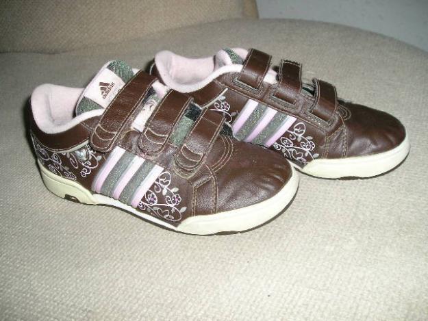 Prodám boty Adidas vel.33 . Jsou hnědé na suchý zips z květinkama a třema růžovýma proužkama. Jsou používané,neokopané jen podrážka je mírně do žluta. Nezkoušela jsem umýt-určitě to zvládne šikovná maminka,která má více času. Parádu ještě stopro udělají!